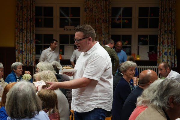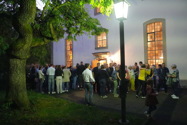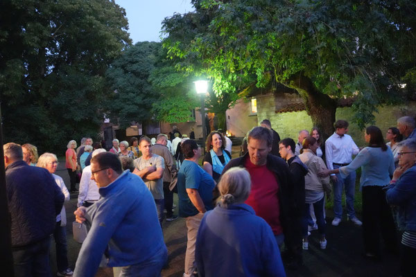 Unser 7. Sommerkonzert in der Kilianskirche in Oberaspach war wieder ein voller Erfolg. Zahlreiche Besucher folgten unserer Einladung, auch wenn es das Wetter in diesem Jahr nicht so gut mit uns meinte. Die Sängerinnen und Sänger des gemischten Chors boten wieder einmal ein äußerst abwechslungsreiches Programm, mit Liedern aus den unterschiedlichsten Bereichen. Renate Philipp moderierte und bei einigen Stücken wurden wir von Clemens Nagel am Cajon begleitet. "Das war vielleicht sogar das beste Konzert, das ich von euch bisher gehört habe", so ein treuer Gast. Entsprechend zufrieden zeigte sich auch Dirigent Eduard Wacker. Nach lang anhaltendem Beifall und einer Zugabe ging es dann in den Probenraum in die Grundschule, wo auf die Gäste kühle Getränke und ein reichhaltiges Buffet warteten. Bis spät in die Nacht hinein wurde gefeiert und auch das ein oder andere Liedchen wurde spontan gesungen.